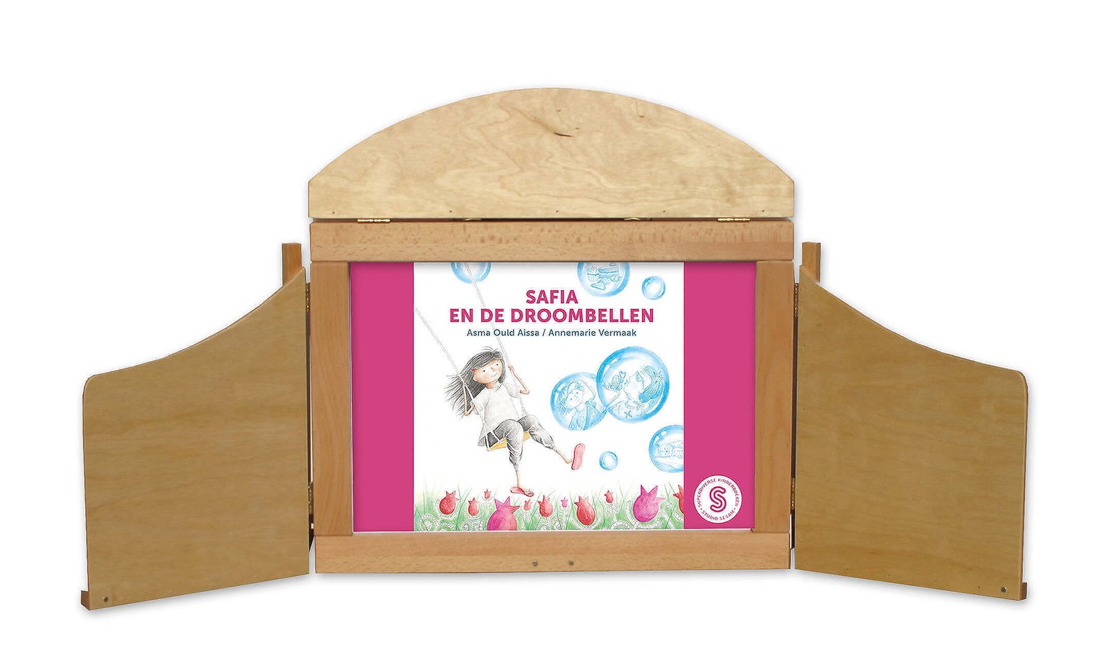 - langs beide zijden bedrukt met de illustraties en het verhaal