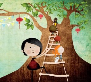 2) Farah is een bijzonder meisje met lange armen. Op een dag is haar vriend Yori, een kameleon verdwenen.
